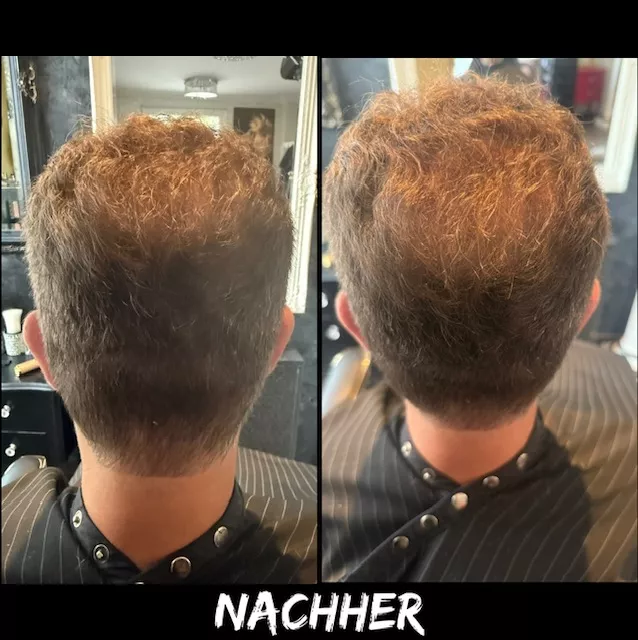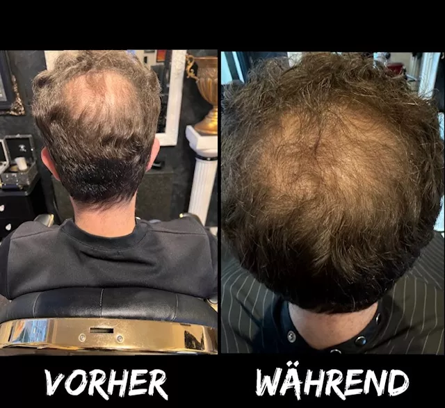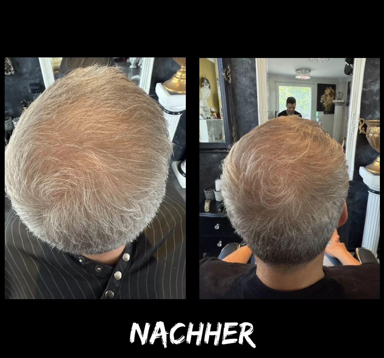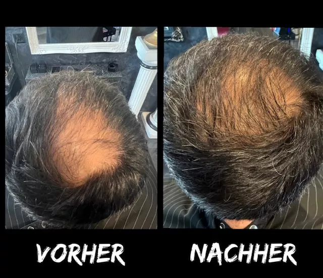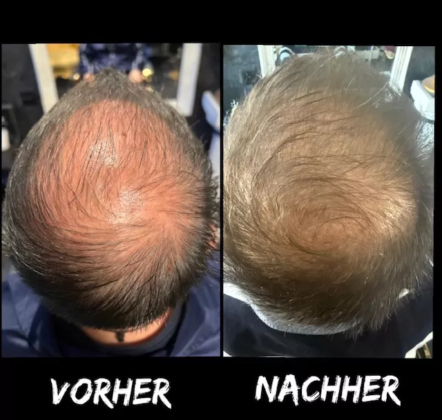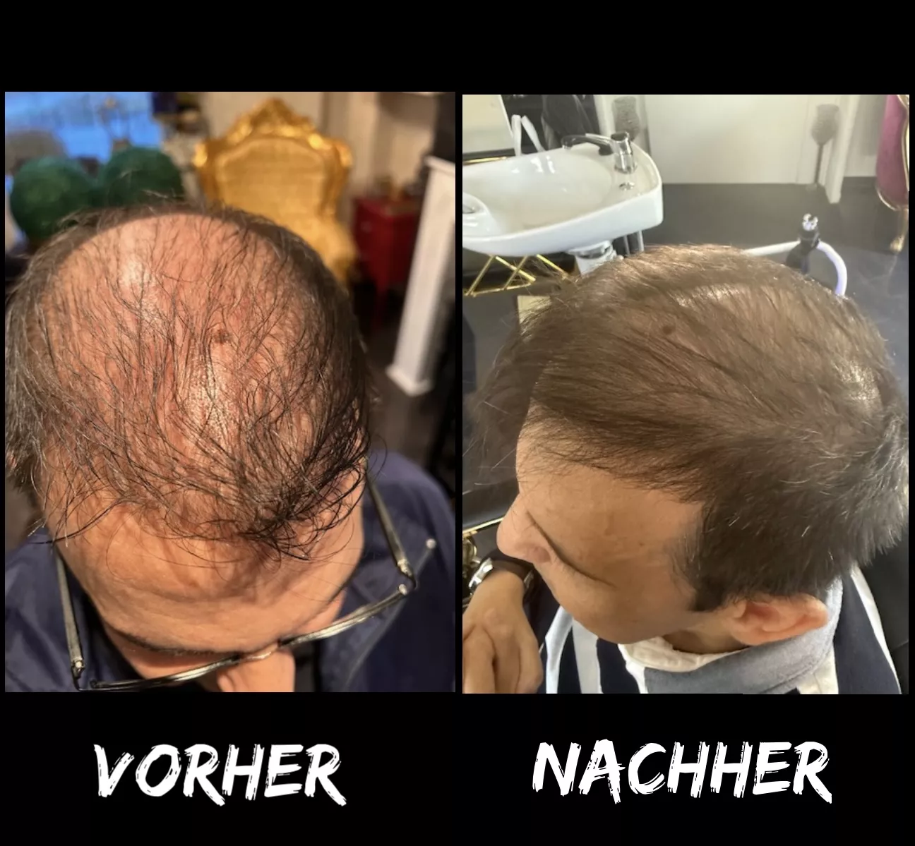 Die Vorher/Nachher-Bilder zeigen klar, was möglich ist. Natürlich hängt der Erfolg von Alter, Ausgangssituation und Haarwurzel-Aktivität ab – jeder Mensch reagiert anders.